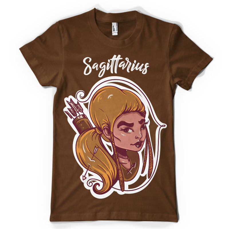 Sagittarius- design featuring detailed portrait of a girl. This illustration was made in Ilustrator, the source file is avaible in PNG,AI,EPS,SVG format and can be used for screenprinting , digital print and tshirt design. Not editable text.