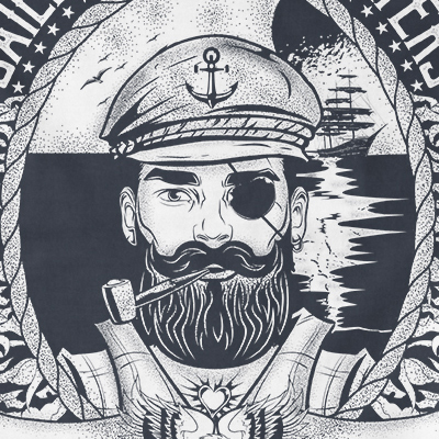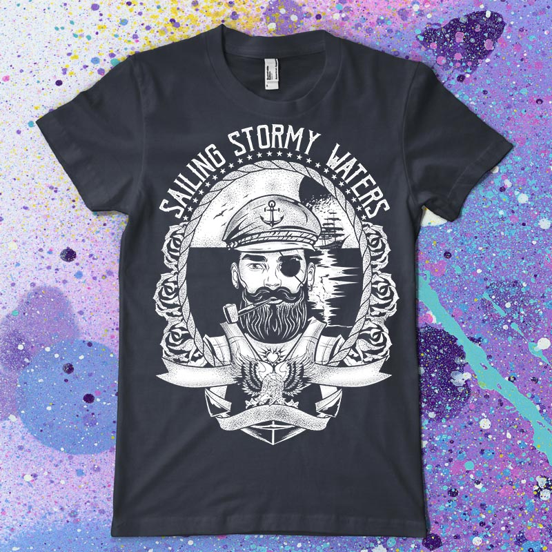 Sailing stormy waters t-shirt design features a SAILOR CAPTAIN design detailed screen print now available for Adobe Illustrator, Adobe Photoshop and Corel Draw and can be used for digital printing and screenprinting.
