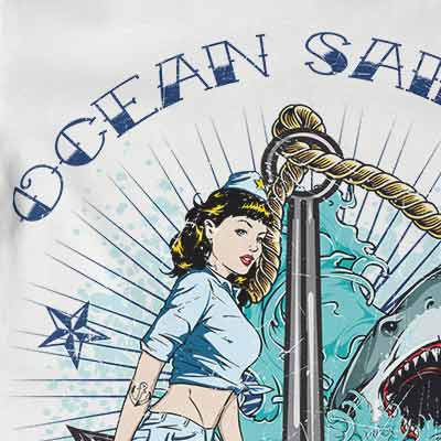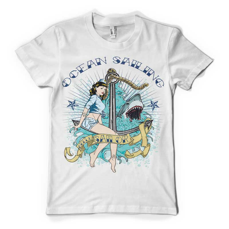 Sailing t-shirt design features a detailed screen print of sexy girl sailing now available for Adobe Illustrator, Adobe Photoshop and Corel Draw and can be used for digital printing and screenprinting .