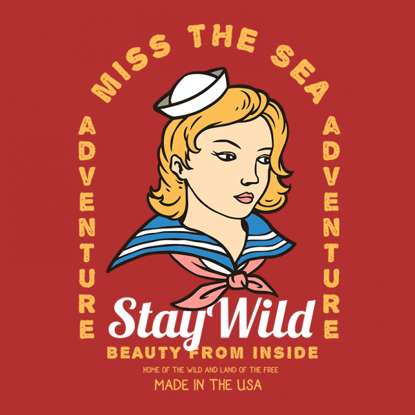 Vector illustration of young sailor lady with 60's graphic and vintage tattoo style illustration. Ready to print on t-shirt.