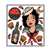 This design is suitable for merchandising purposes, as well as old-school themed t-shirts and clothing or tattoo culture.