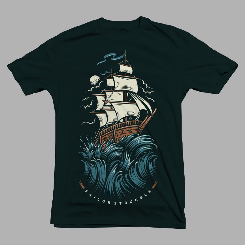 "Sailor Struggle" tattoo style t-shirt design.