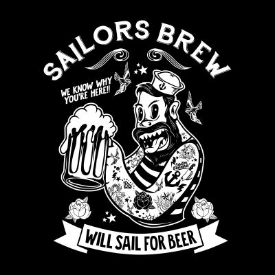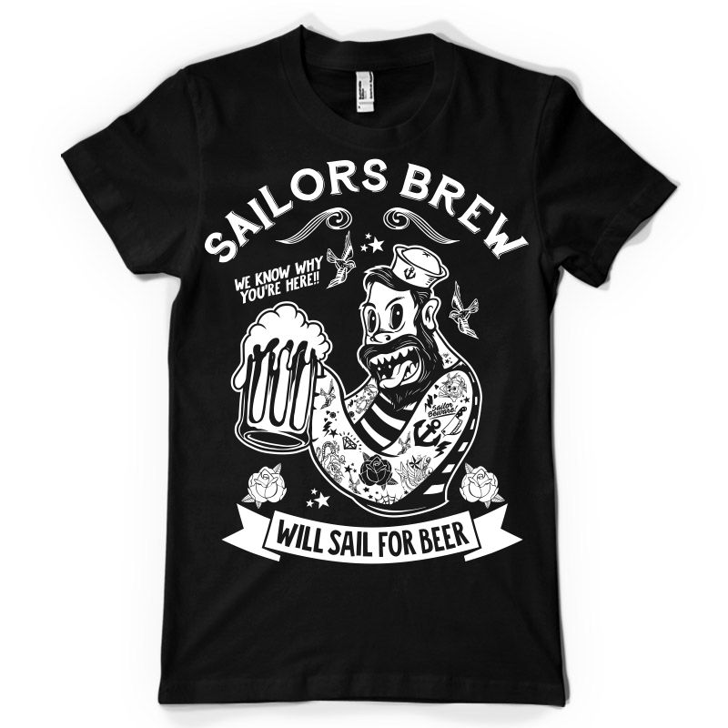 The "Sailors Brew" t-shirt design contains a single color, and it's saved in Adobe Illustrator and PNG with transparency. Can be used for digital printing and screen printing.