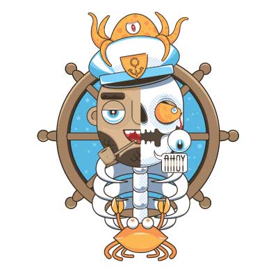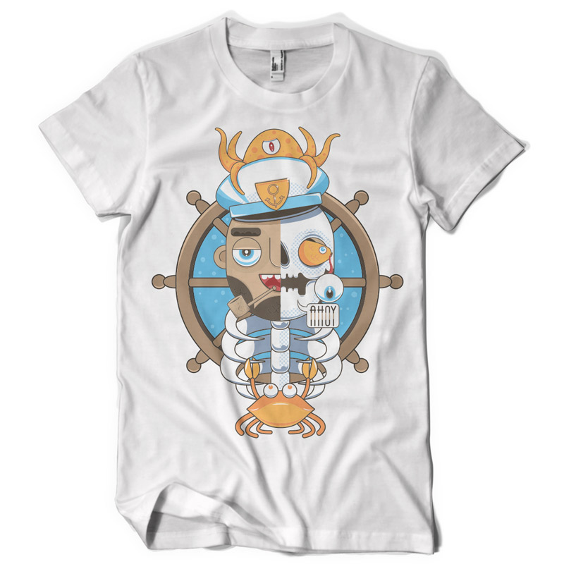 Sailors' Grave printed t-shirt features a detailed screen print of half captain and skull now available for Adobe Illustrator, Adobe Photoshop and Corel Draw and can be used for digital printing and screenprinting . Ready to print or use in anything you want.
