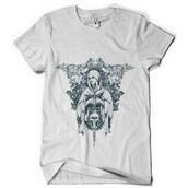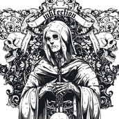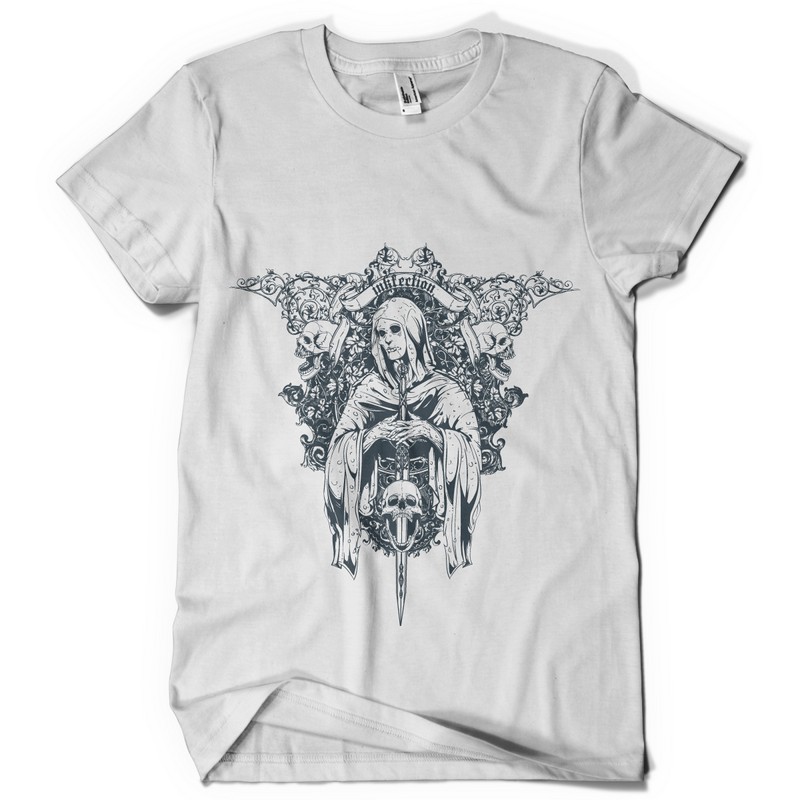 Saint inkfection T-shirt design template in vector format, featuring detailed saint skull stabbing a skull now available for Adobe Illustrator, Adobe Photoshop and Corel Draw and can be used for digital printing and screenprinting .