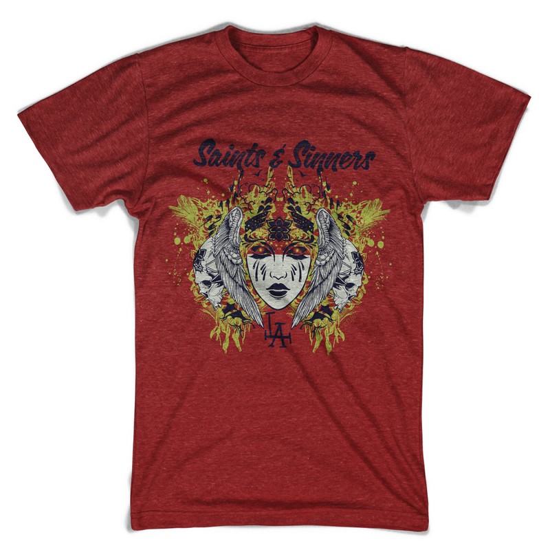 Digital design featuring detailed sad face. Saints and sinners template is available in vector format and can be used for digital printing and screenprinting. The file will be available for Adobe Illustrator, Adobe Photoshop and Corel Draw.