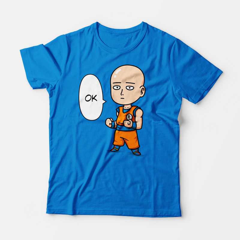 The superfunny tribute to One Punch Man hero character Saitama dress like Goku. 2 generation comparing to this shirt.