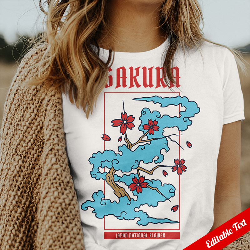 Vector illustration of sakura flowers of japan. Ready to print on t-shirt.