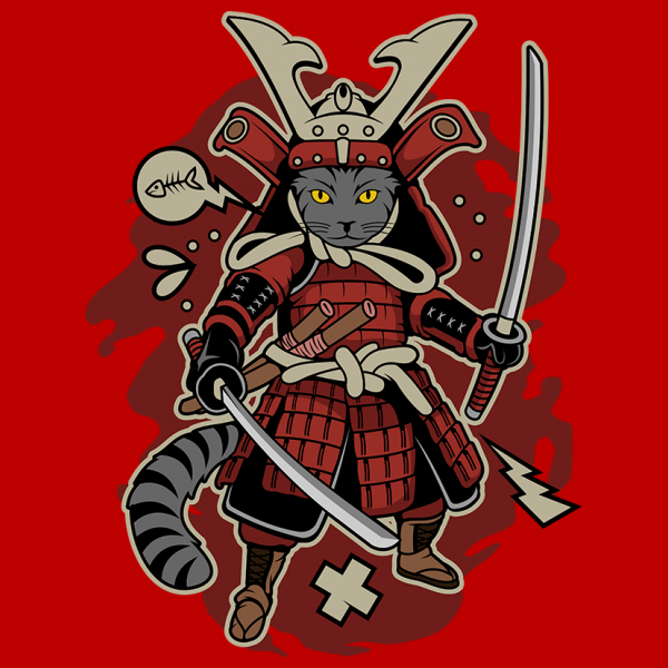 funny samurai cat Vector illustration tshirt design , available on Corell Draw X4 file, Adobe illustrator file , EPS , Transparent Back Ground PNG file , PDF file its can be use for Digital printing and screen printing