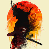 "Samurai Code" is a unique digital illustration of a Samurai Warrior with elements of Sun, Buildings, Sword and Geometric Figures being incorporated into the design to make this design pop on tee. File contains a PSD file with 17 x 24 in size.