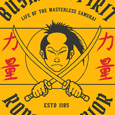 Vector illustration of samurai ancient warrior with katana on his hands. Ready to print on t-shirt.