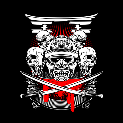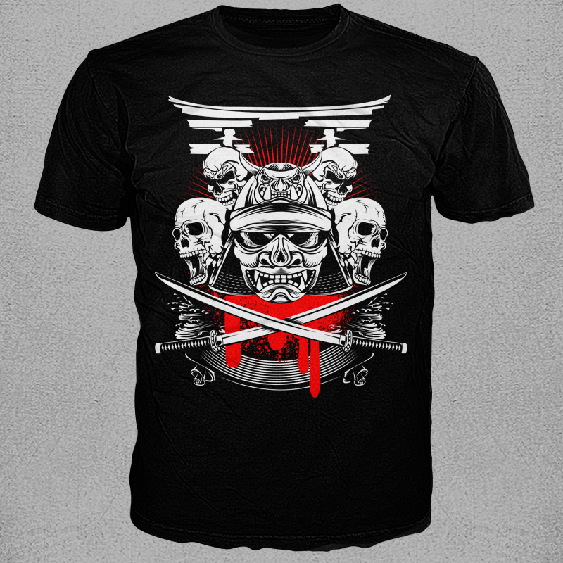 Colors and size in "Samurai Head" is easy editable for any dark colors shirt.