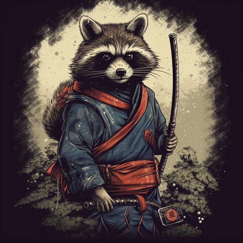 Samurai Raccoon Japanese Warrior
