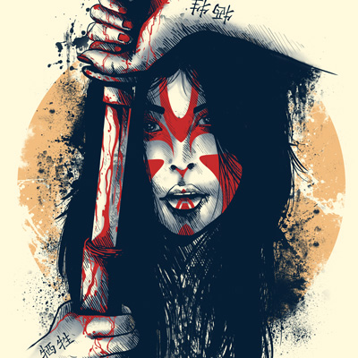 "Samurai Sacrifice" is a unique illustration of a modern Geisha warrior holding a bloody samurai with a subtle sunset behind her and a calligraphy of "sacrifice" on its hands fighting for what is right not even it can lead her to death. File contains 17x 24 in size with 300 in dpi.