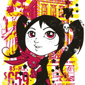 Sandpaper graphic design template in vector format, featuring detailed cute school girl now available for Adobe Illustrator, Adobe Photoshop and Corel Draw and can be used for digital printing and screenprinting .