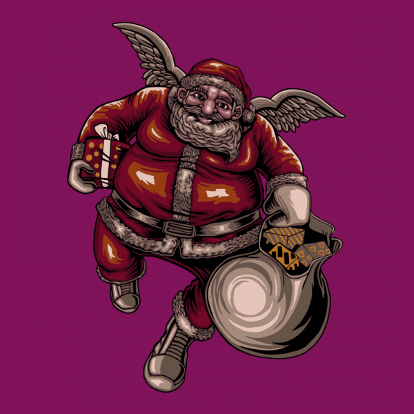 Santa and wing of angels is a fantasy illustration design, I can say my own imagination, what is the shape of the santaclaus with wings, so he doesn't need help from the reindeer, available in Ai, CDR, EPS, and PNG files