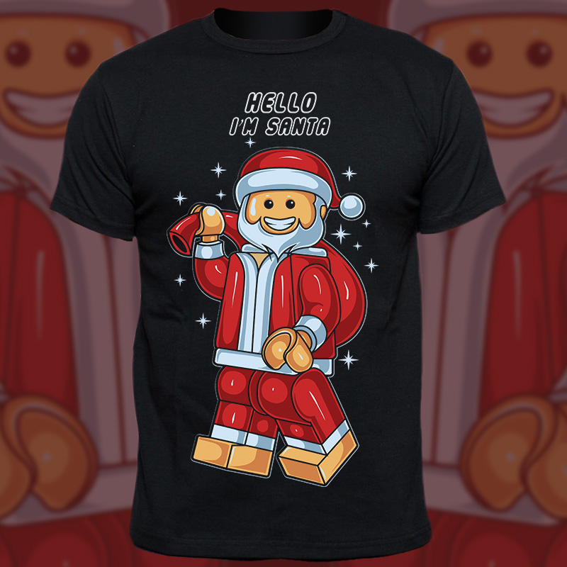 Santa Lego T-shirt design Template with Adobe Illustrator, the file is Ai separated Layers and Eps. Can be used for digital printing and screen printing.