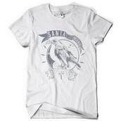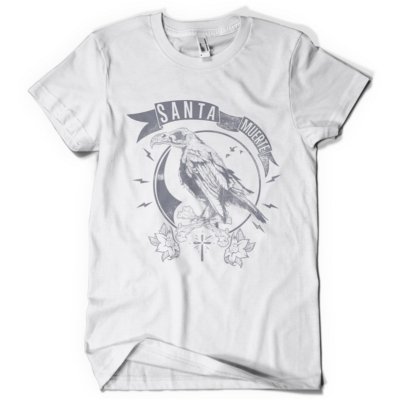 Santa Muerte Messenger graphic design template in vector format, featuring detailed old crow now available for Adobe Illustrator, Adobe Photoshop and Corel Draw and can be used for digital printing and screenprinting .
