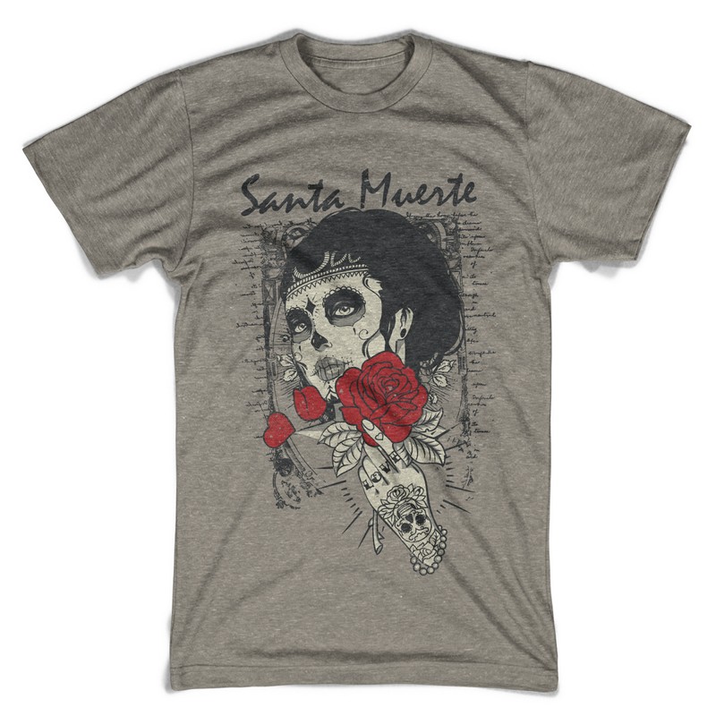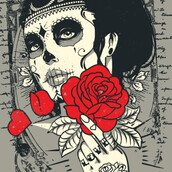 Santa muerte Rose graphic design template in vector format, featuring detailed tattoed woman face now available for Adobe Illustrator, Adobe Photoshop and Corel Draw and can be used for digital printing and screenprinting .