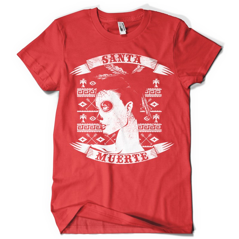 Santa muerte graphic design template in vector format, featuring detailed sugar skull girl now available for Adobe Illustrator, Adobe Photoshop and Corel Draw and can be used for digital printing and screenprinting .