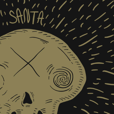 ---Santa Skull---T-shirt design it´s a lineal art hand drawing vector// Done to put in over dark and light colors// 29.1 cm X 32.3 cm, you can change the size// .Ai and .Psd archives ready to print.