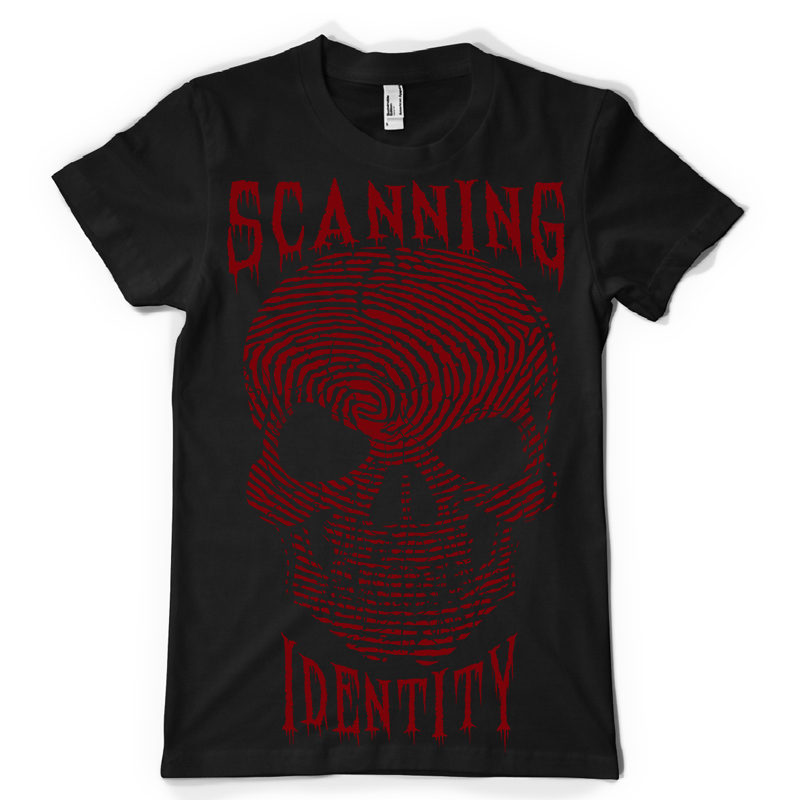 Scanning design features a skull fingerprints detailed screen print now available for Adobe Illustrator, and Corel Draw and can be used for digital printing and screenprinting