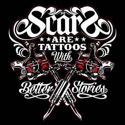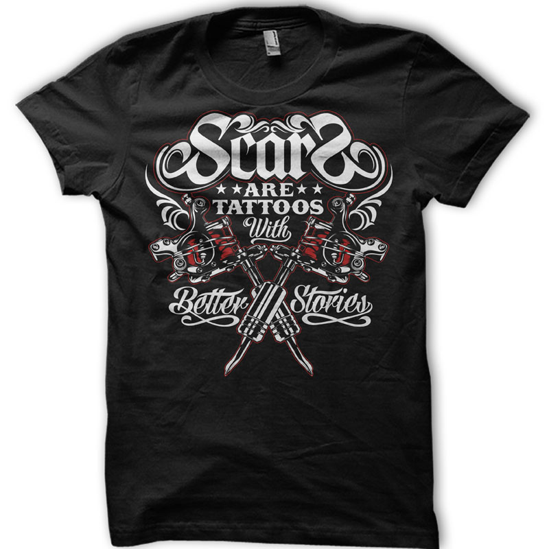 "scars are tattoos with better stories" Design Created with Corel X6 and Adobe illustrator,two color Design, Can be used for Digital printing and screen printing.enjoy!