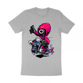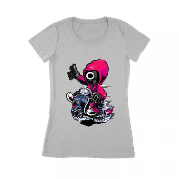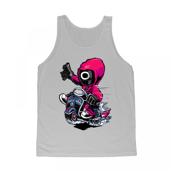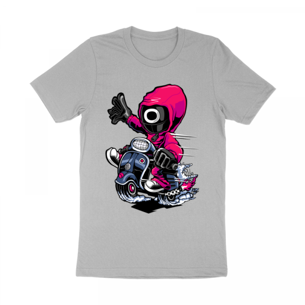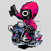“Squid Game Scooter ” Cartoon style. such as Ai,EPS,CDR, PDF, PDS, SVG, and PNG Transparent. the design has 8 colors. print it can be used for digital printing and screen printing