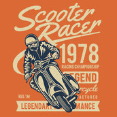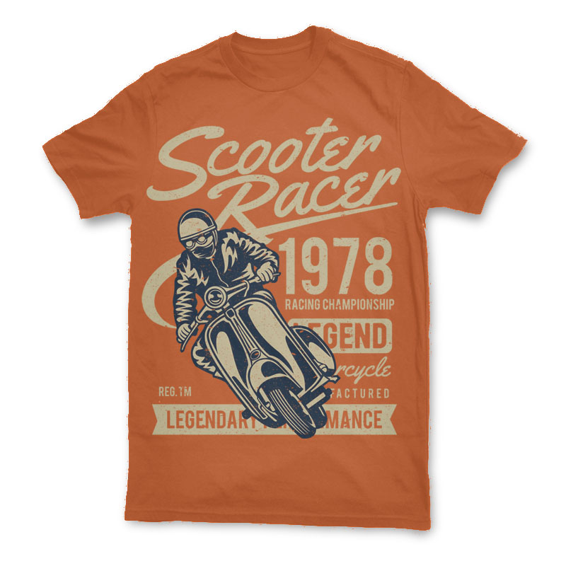 Scooter Racer Tshirt Design Template based on vector files , such as AI and CDR also with PSD separated Layers file, the design has 2 color print, it can be used for digital printing and screen printing.