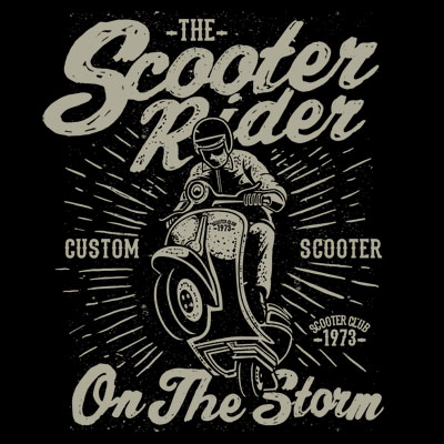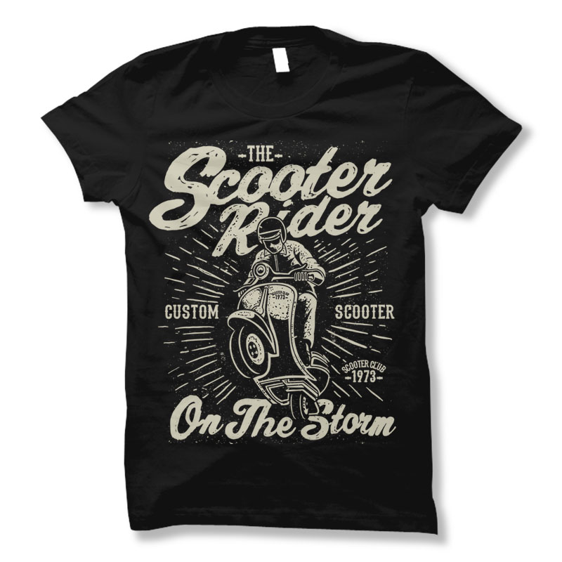 Scooter Rider Tshirt Design Template based on vector files , such as AI and CDR also with PSD separated Layers file, the design has 1 color print, it can be used for digital printing and screen printing