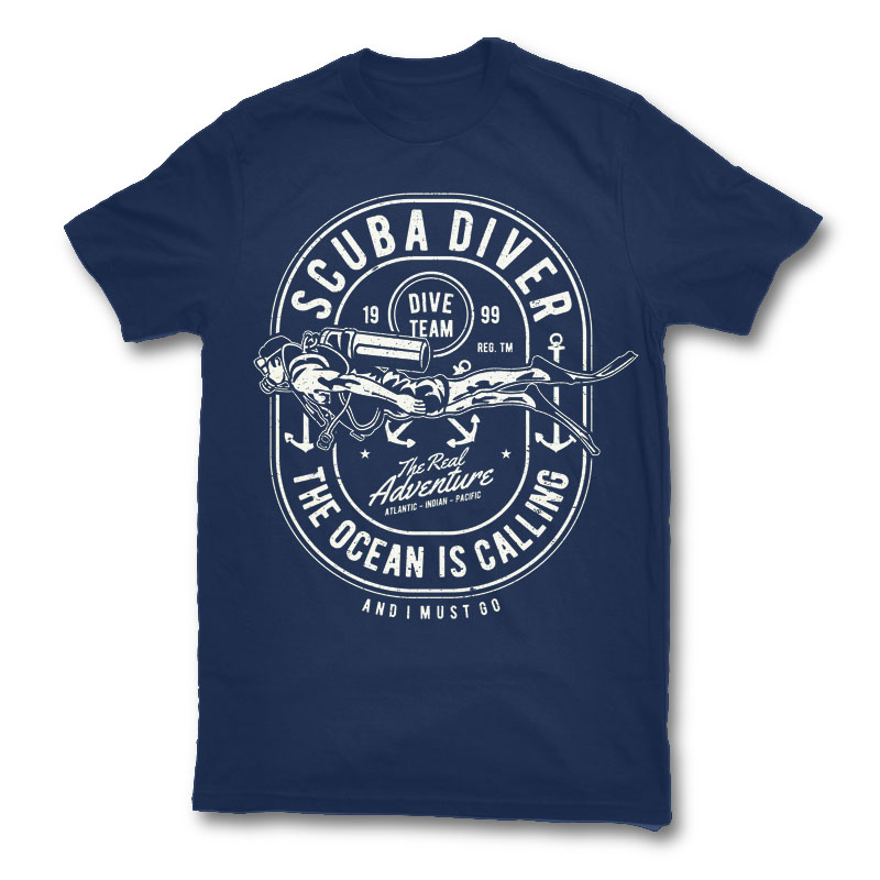 Scuba Diver Tshirt Design Template based on vector files , such as AI and CDR also with PSD separated Layers file, the design has 1 color print, it can be used for digital printing and screen printing.