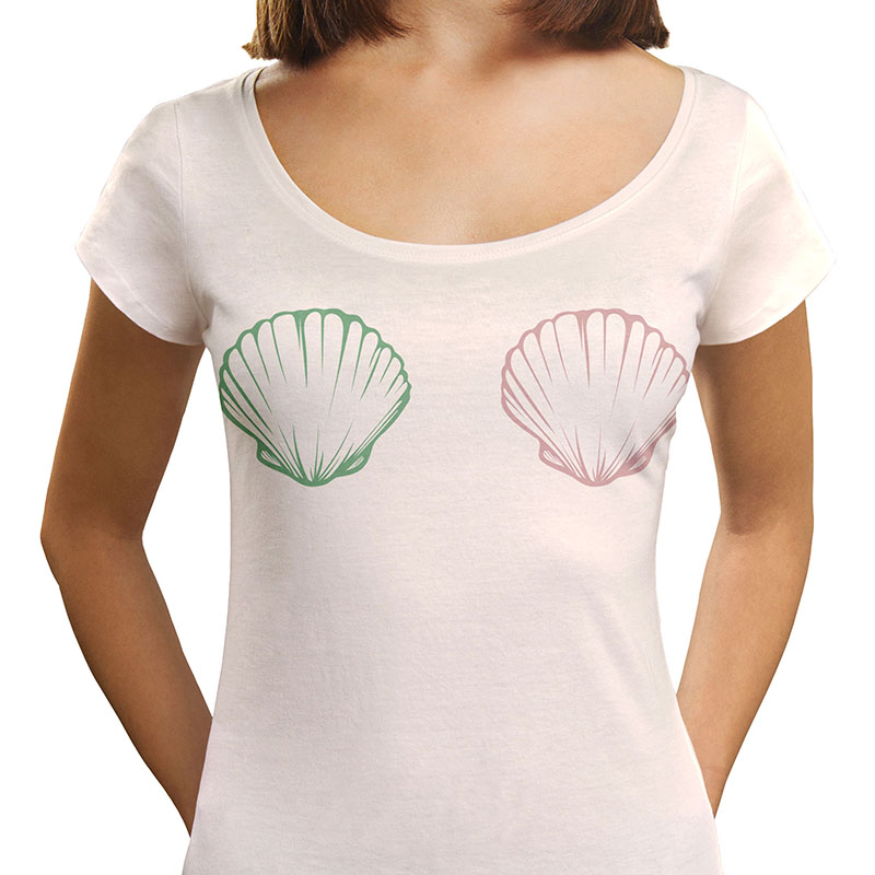 Seashells bra is an illustration made in Adobe Illustrator,featuring 2 seashells as a bra.It can be used on digital printing,screen printing and T-shirt design and it is available in PSD,EPS,AI and CDR format file.