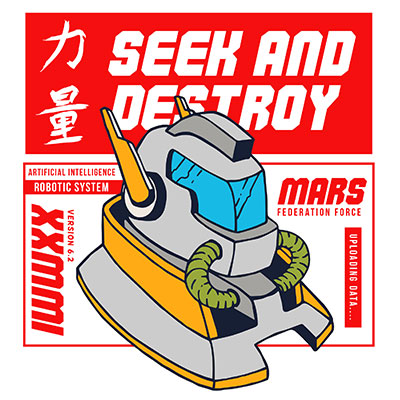 Vector illustration of giant mech robotic technology. Ready to print on t-shirt.