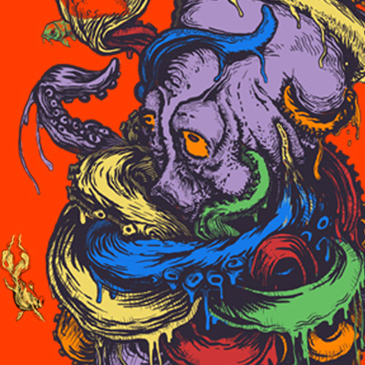 Love Self--is a concept about an octopus inducing itself a tight self hug. High Resolution image rendered in adobe photoshop. Sharp lines and vivid colors are preserved.