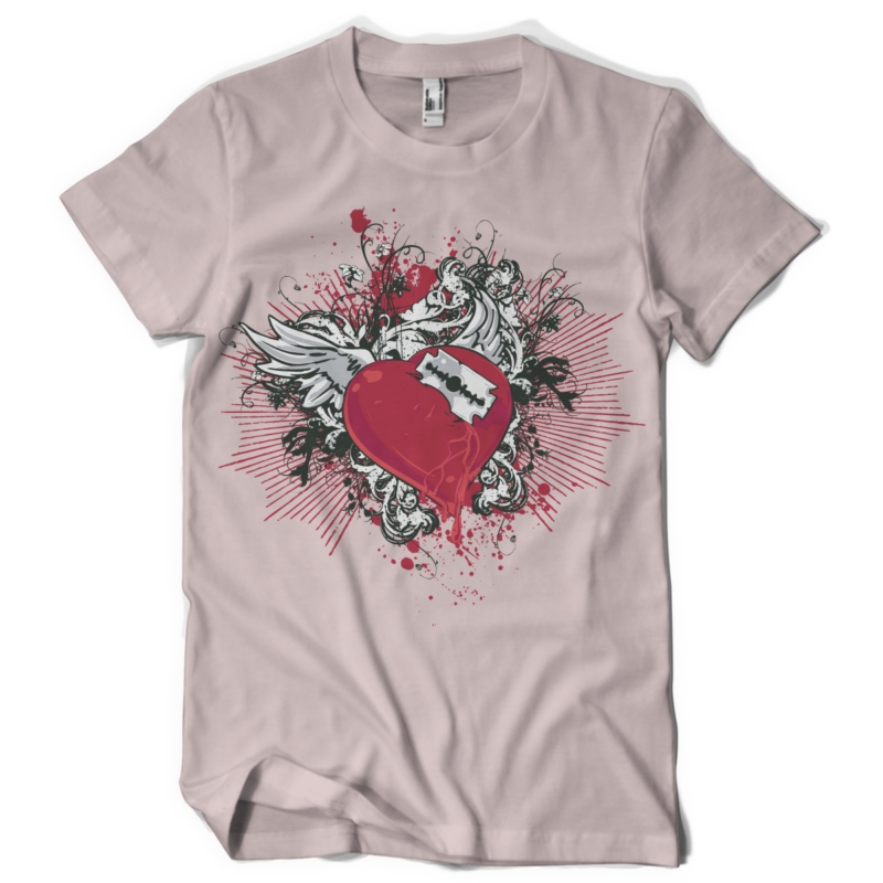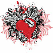 Digital t-shirt design featuring detailed wounded heart, flourish details.Selfish life template will be available in vector format for Adobe Illustrator, Adobe Photoshop and Corel Draw .