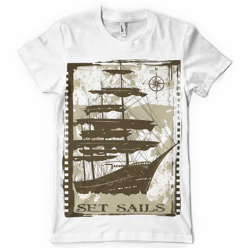 Set sails printed t-shirt features a detailed screen print of sailboat on sea is now available in EPS format file and can be used for digital printing and screenprinting . Ready to print or use in anything you want.