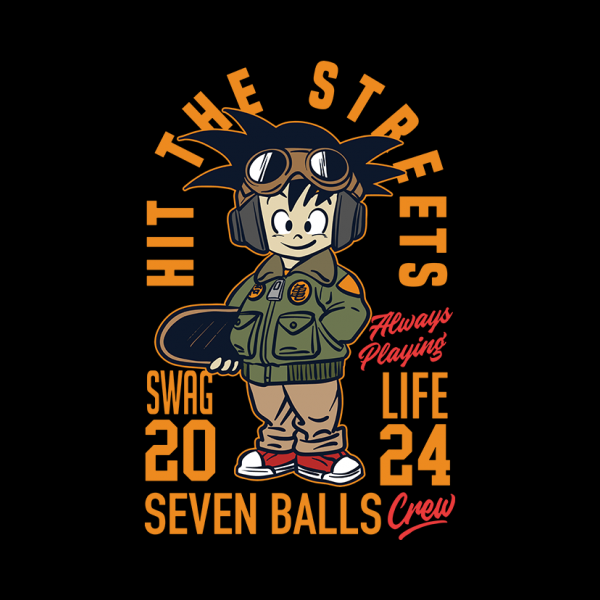 This design “ seven balls crew ” is made in Adobe Ilustrator is ready for print.