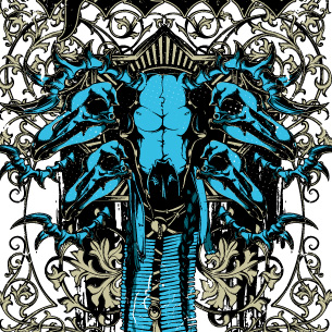 Seven head digital design template in vector format, featuring detailed creepy creature now available for Adobe Illustrator, Adobe Photoshop and Corel Draw and can be used for digital printing and screenprinting .