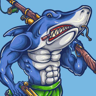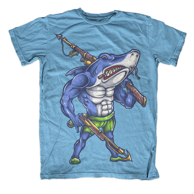 Vector illustration of shark character design with rifle. Ready to print on t-shirt.