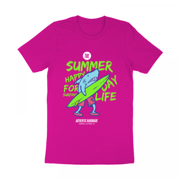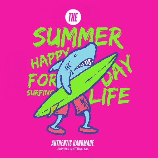 Vector illustration of a shark walking on the beach holding surfboard. Ready to print on t-shirt.
