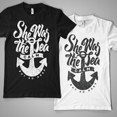 "She was the sea" T-shirt design featuring typography style quote, with distressed details. The files available are suitable for Adobe Illustrator and Adobe Photoshop and can be used for digital printing and screenprinting.