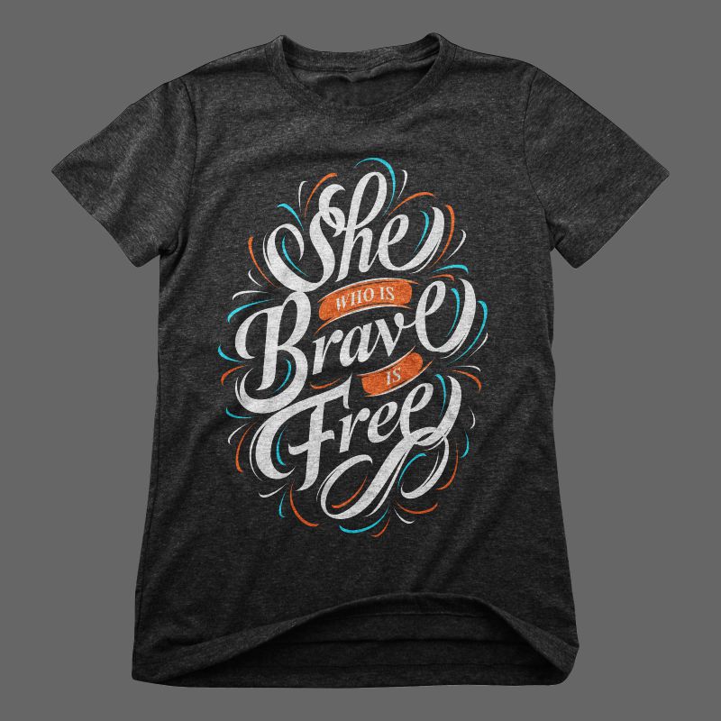 "She Who is Brave is Free" Typography style t-shirt design.