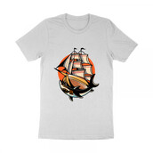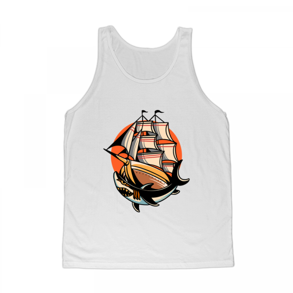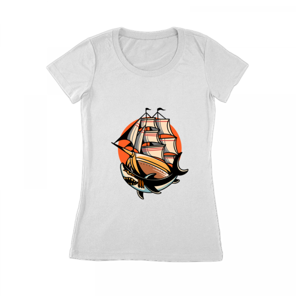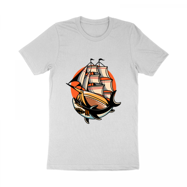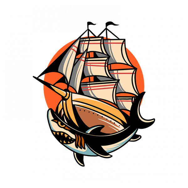 ship and shark traditional design