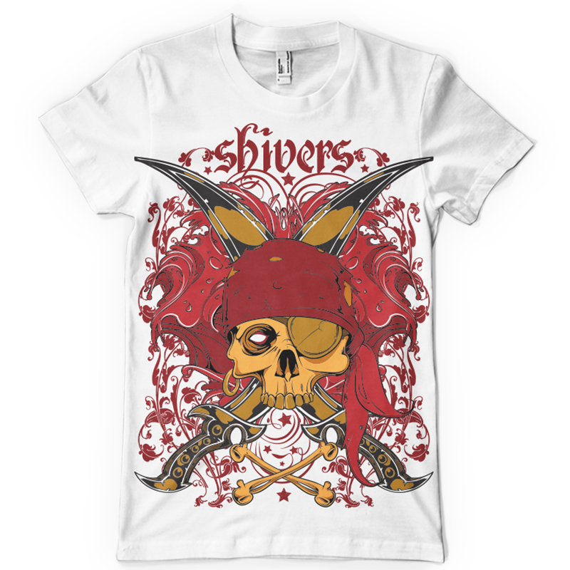 Shivers printed t-shirt features a detailed screen print of bad pirate is now available in EPS format file and can be used for digital printing and screenprinting . Ready to print or use in anything you want.