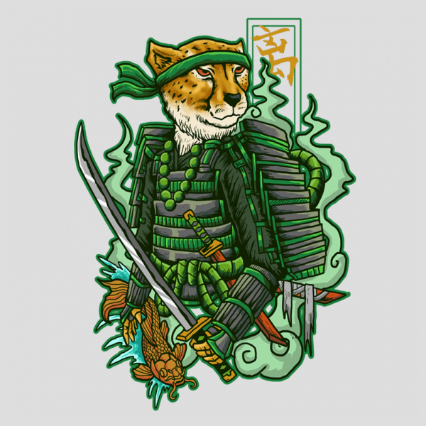 This awesome Shogun Cheetah in Green Samurai Armor Available in PNG with 300 dpi and ready to used on digital printing stuff