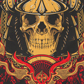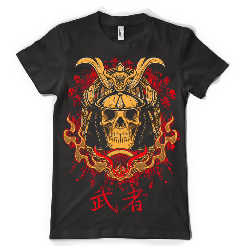 Shogun t-shirt design features a samurai mask detailed screen print now available for Adobe Illustrator, Adobe Photoshop and Corel Draw and can be used for digital printing and screenprinting .