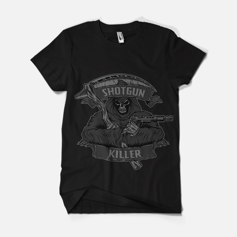 "SHOTGUN KILLER" HighT-shirt design use 2 color on black or gray with AI CS4 and EPS CS4 file and separate color layer by layer.