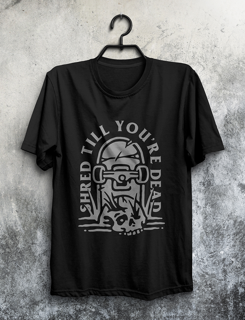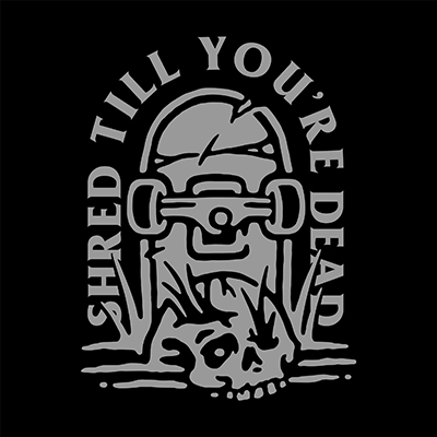 SHRED TILL YOU'RE DEAD design is a vector design. The files including Ai, EPS and PNG with transparent background. Perfect for both digital printing and screen printing.