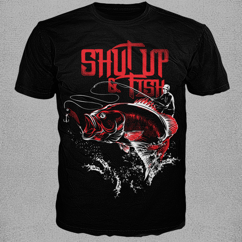 Colors and size in "Shut up and Fish" is easy editable for any dark colors shirt. Design compatible for screen printing and Direct to Garment (DTG) and PNG for simple anything digital print.