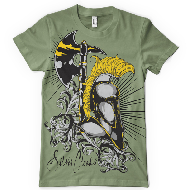 Silver cloaks printed t-shirt features a detailed screen print of medieval warrior is now available in EPS format file and can be used for digital printing and screenprinting . Ready to print or use in anything you want.